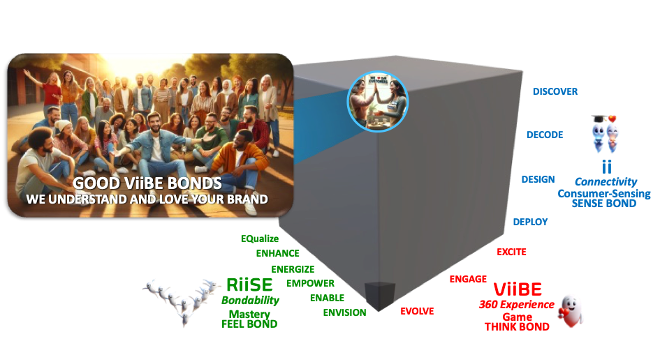 Think about ImagineerShip as how the world’s best symphony orchestra would be performing under ideal conditions. Imagine how the orchestra all the time receives streaming audience (consumer) feedback to SENSE which tones and tunes are preferred. Imagine how the orchestra is enabled to dynamically THINK and change the repertoire and style without losing its identity (positioning and unique differentiated brand story). Imagine how the conductor and every musician can make the audience FEEL the bondability of the orchestra as their passion flows through the air in perfect harmony. Imagine the audience experiencing a ViiBE so good that they begin to feel a bond with the orchestra…an urge to come back repeatedly. Now transfer that feeling of your best concert ever to how you do business. You’ve just imagined ImagineerShip. 💗